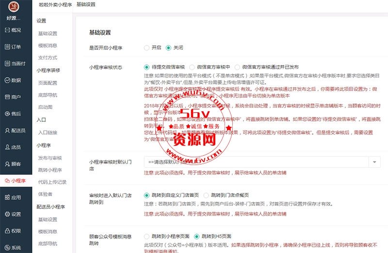 微擎小程序 啦啦外卖17.8.0开源版 带平台+商家+配送小程序前端后台功能插件齐全,这是一套非常完整的外卖源码(公众号+小程序版带有APP接口可以自己开发下APP),公众号前端和小程序前端内容商品等展示正常,活动功能等正常。